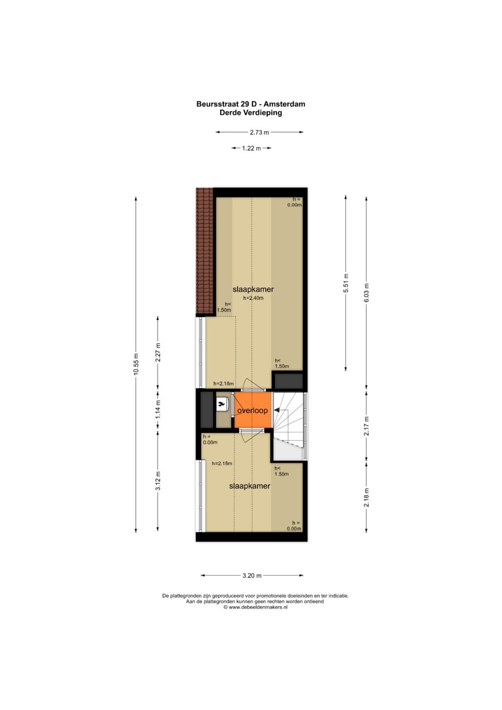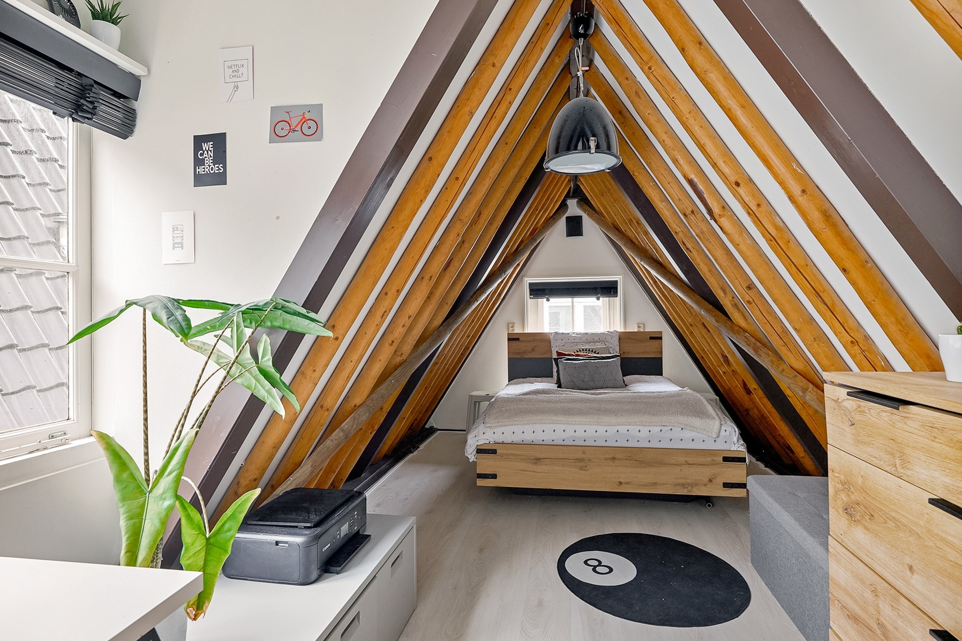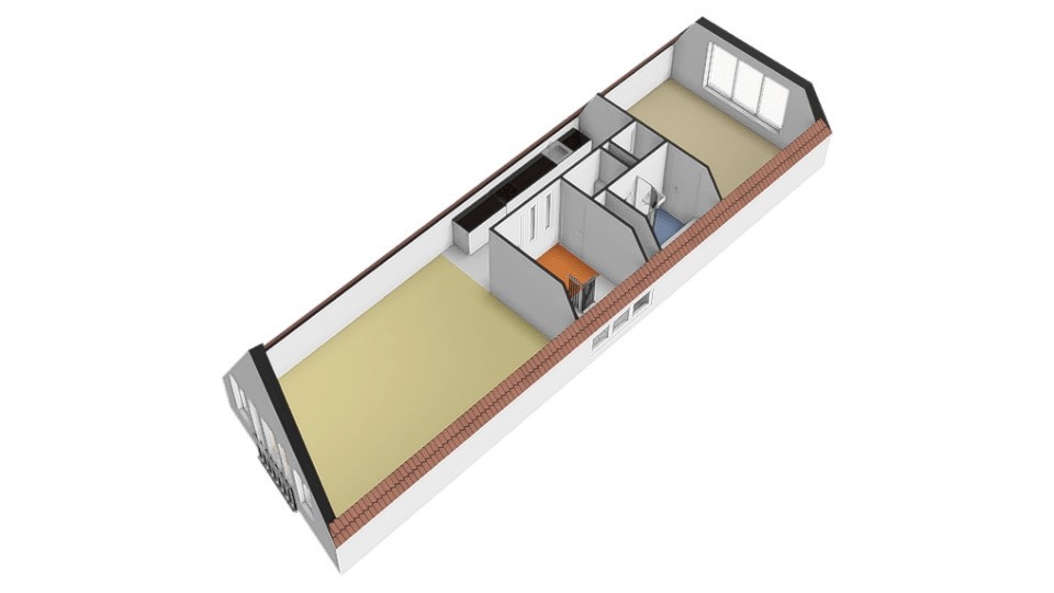 the stairs, a dormer window allows plenty of light to enter both the upstairs and the living room through the steel glass walls. On the fourth-floor landing, a roughly four-year-old central heating boiler is located in the storage room. The cozy second and third bedrooms are located at the front and rear, both with dormer windows, allowing for plenty of natural light. The entire fourth floor has soundproof, light wood-look PVC flooring. The third bedroom extends into a ridge, creating a cozy alcove where a double bed can be placed. From the window, you have a view of the charming Oude Kerk (Old Church).