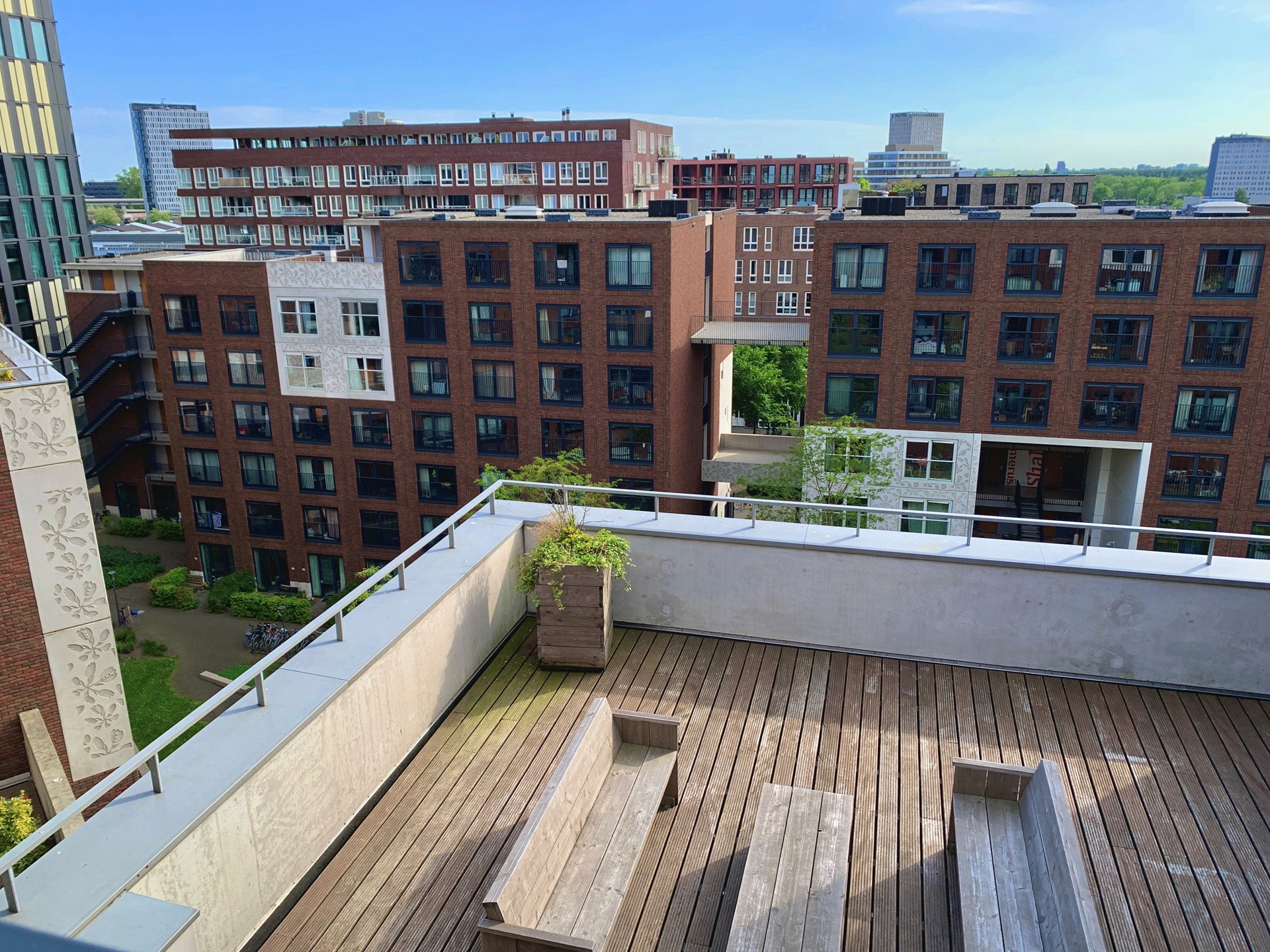 The apartment is part of the award-winning Villa Mokum complex (2014). The studio features a modern, luxury kitchen with built-in appliances and a modern bathroom. The apartment has underfloor heating and has been well-maintained by the current owner. The apartment has recently been smoothly plastered and freshly painted. Situated on the 7th floor, you can enjoy the pleasant natural light and the stunning view every day. On the ground floor, you'll find various shops and other amenities, and there are also several communal terraces within the complex. Outside, you'll find a beautiful, large courtyard garden and convenient bicycle storage. You'll live right in the heart of the desirable Amstelkwartier, a young neighbourhood in Amsterdam East that's still developing rapidly but has already developed into a vibrant, popular city neighbourhood with countless hotspots.