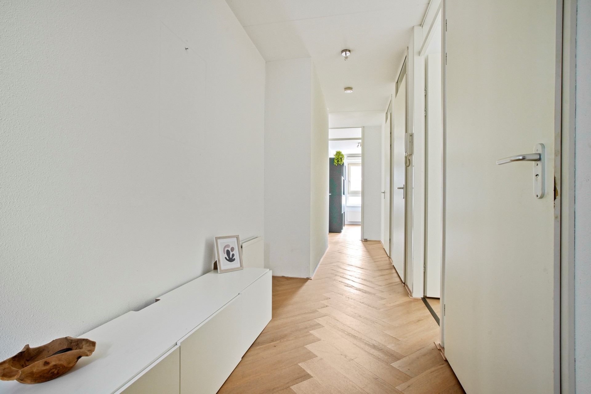 Je betreedt het appartement via het zonnige balkon dat bij de woning hoort. Binnenkomst in de ruime hal met de meterkast, een separaat toilet en toegang tot de lichte eetkamer. De moderne badkamer ligt centraal in de woning en is voorzien van een douche en wastafel.