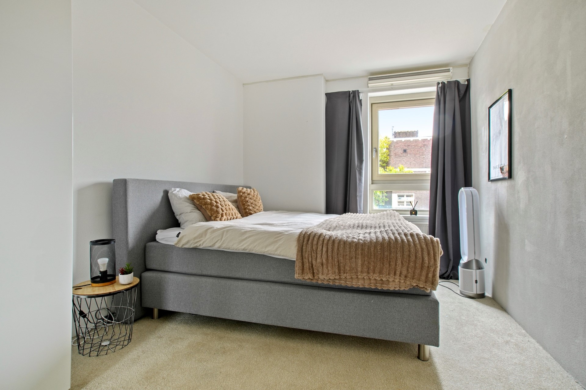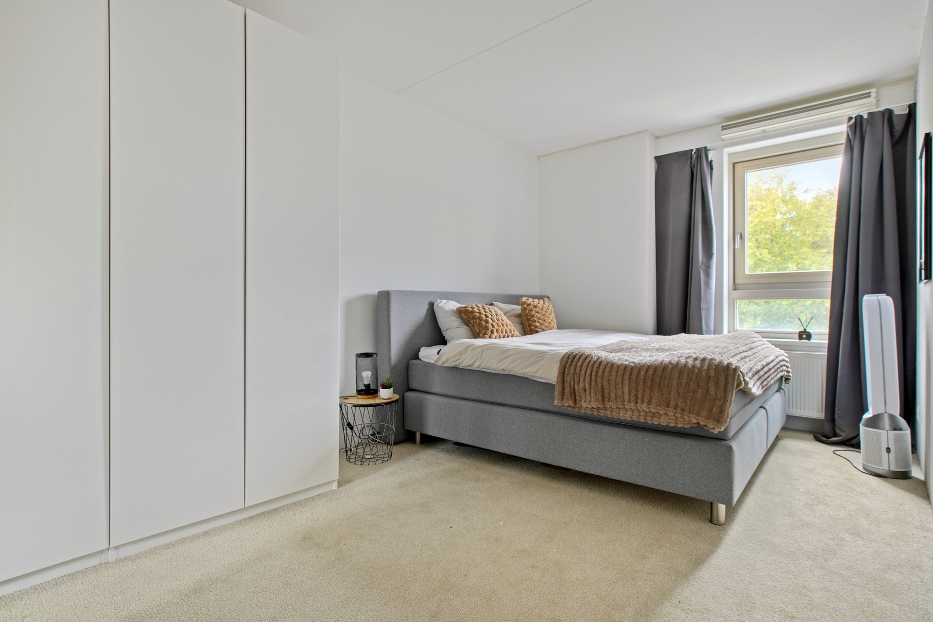 De twee ruime slaapkamers liggen aan de rustige zijde van de woning en bieden voldoende ruimte voor een tweepersoonsbed; in de hoofdslaapkamer is bovendien plek voor een grote kledingkast.