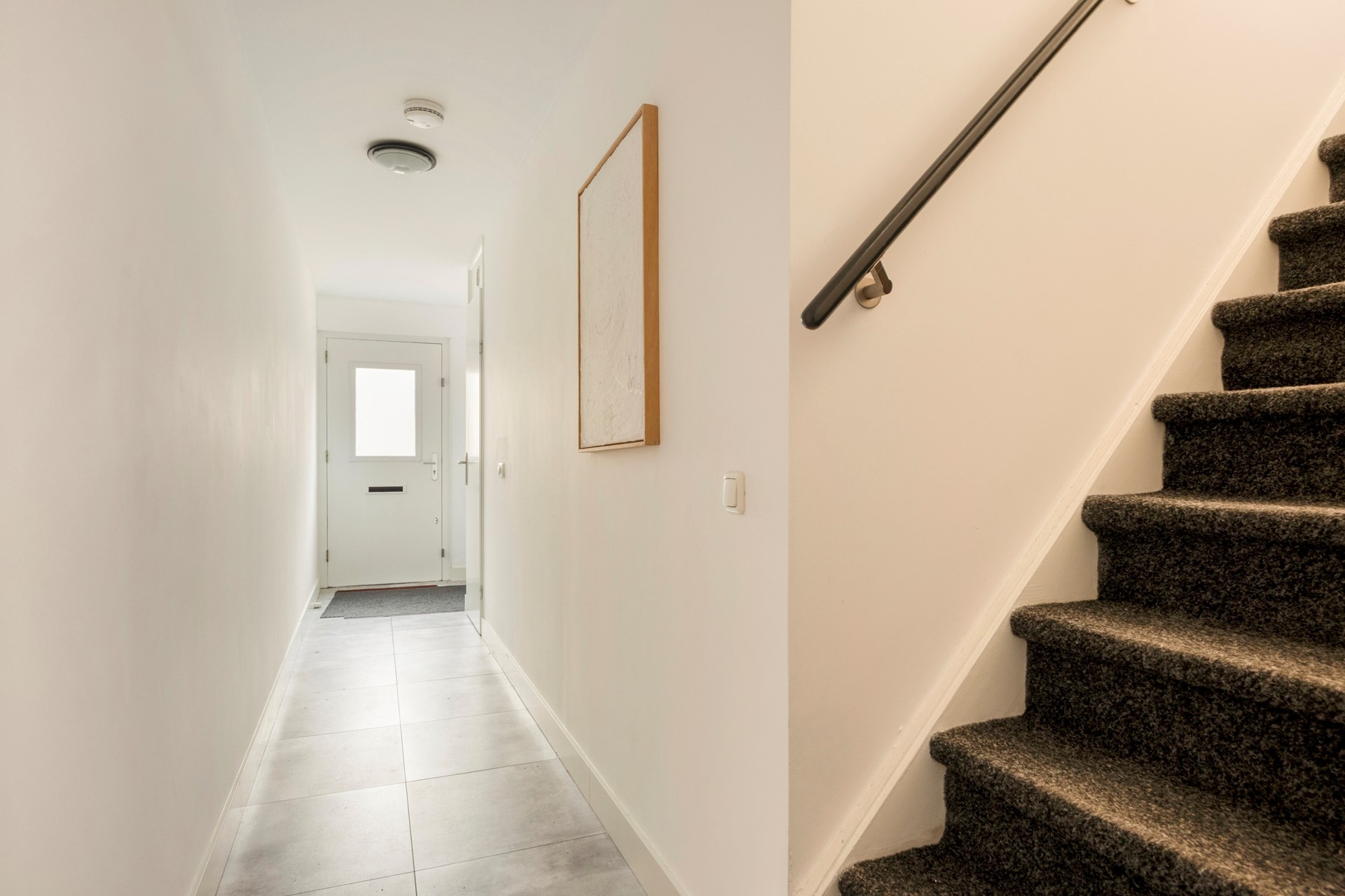The ground floor is fully fitted with practical tiled flooring, while the upper floors have oak-look laminate flooring. All walls and ceilings are smoothly plastered. The house has practical front and back gardens, and in the back garden, you'll find a detached wooden shed with electricity. The entire house is very well finished.