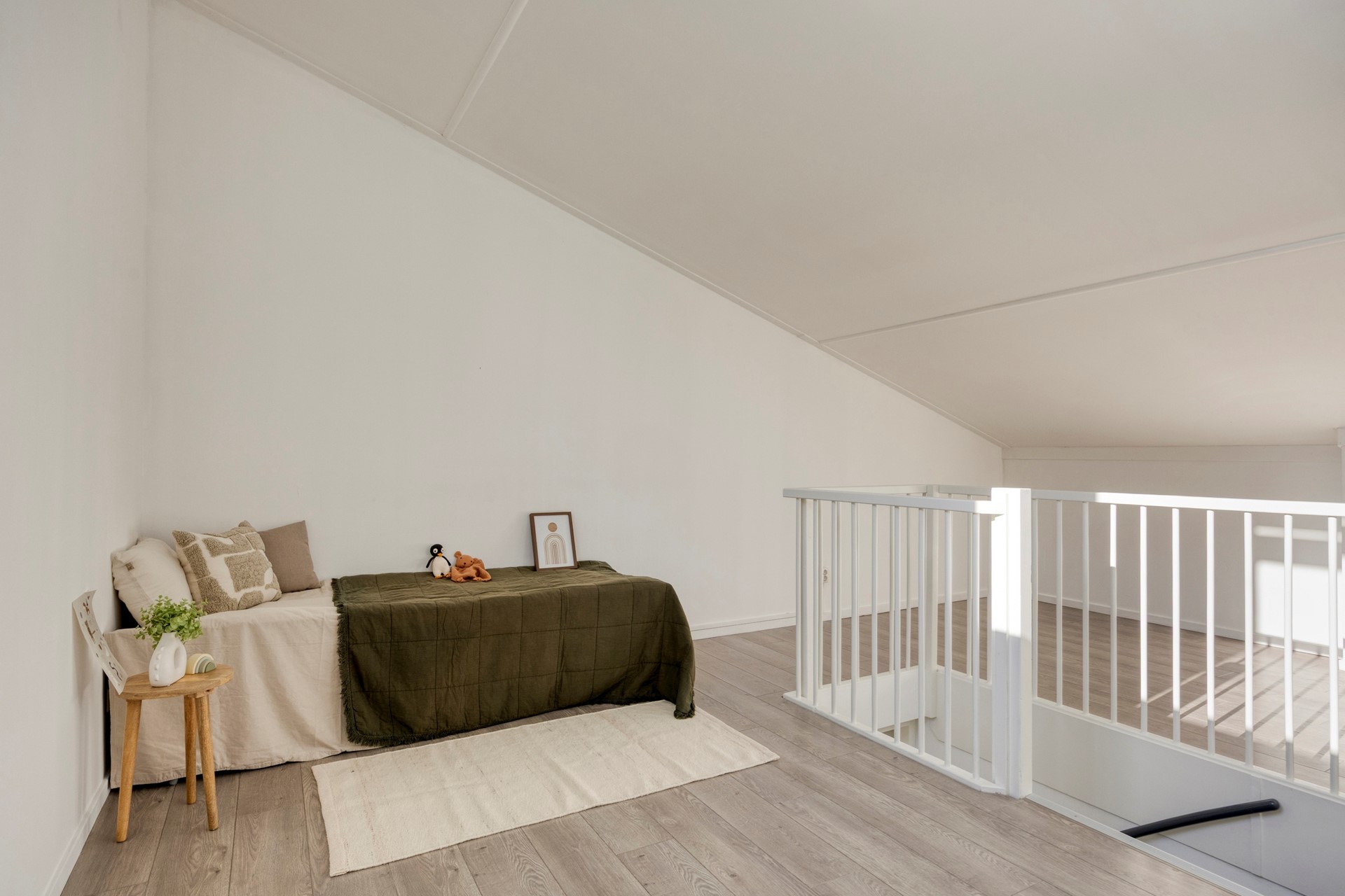 First floor: Landing with access to two spacious and bright bedrooms, one of which is located at the front of the house. However, it is perfectly possible to create your own living area on this floor. Plumbing for a second kitchen is available, and a separate toilet with hand basin is also located on this floor. Second Floor: Here you'll find two more spacious bedrooms and the second, new bathroom with a walk-in shower, sink, and toilet.