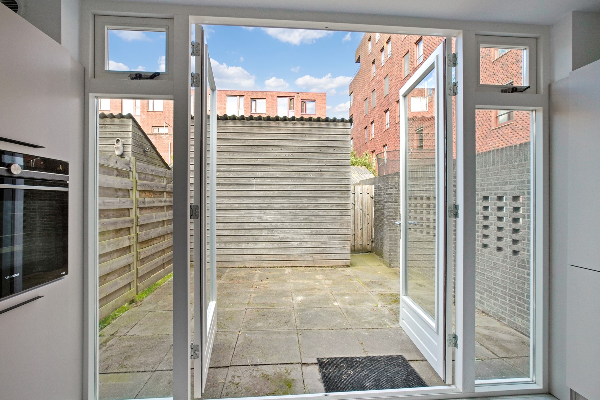 Ground floor: Front garden, entrance, long hallway with separate toilet and hand basin. From the hallway, you enter the spacious living/dining room with the brand-new, beautiful open-plan kitchen. Both the living room and kitchen are very bright thanks to the large windows and skylights. The modern, new open-plan kitchen is equipped with almost every conceivable built-in appliance. From the kitchen, French doors open onto the well-maintained back garden. The back garden measures approximately 36m², is low-maintenance, and faces northwest. In the garden, you'll find a large wooden shed and rear access. At the front, you'll find the first bathroom with a shower and sink, and a bedroom or a practical home office.