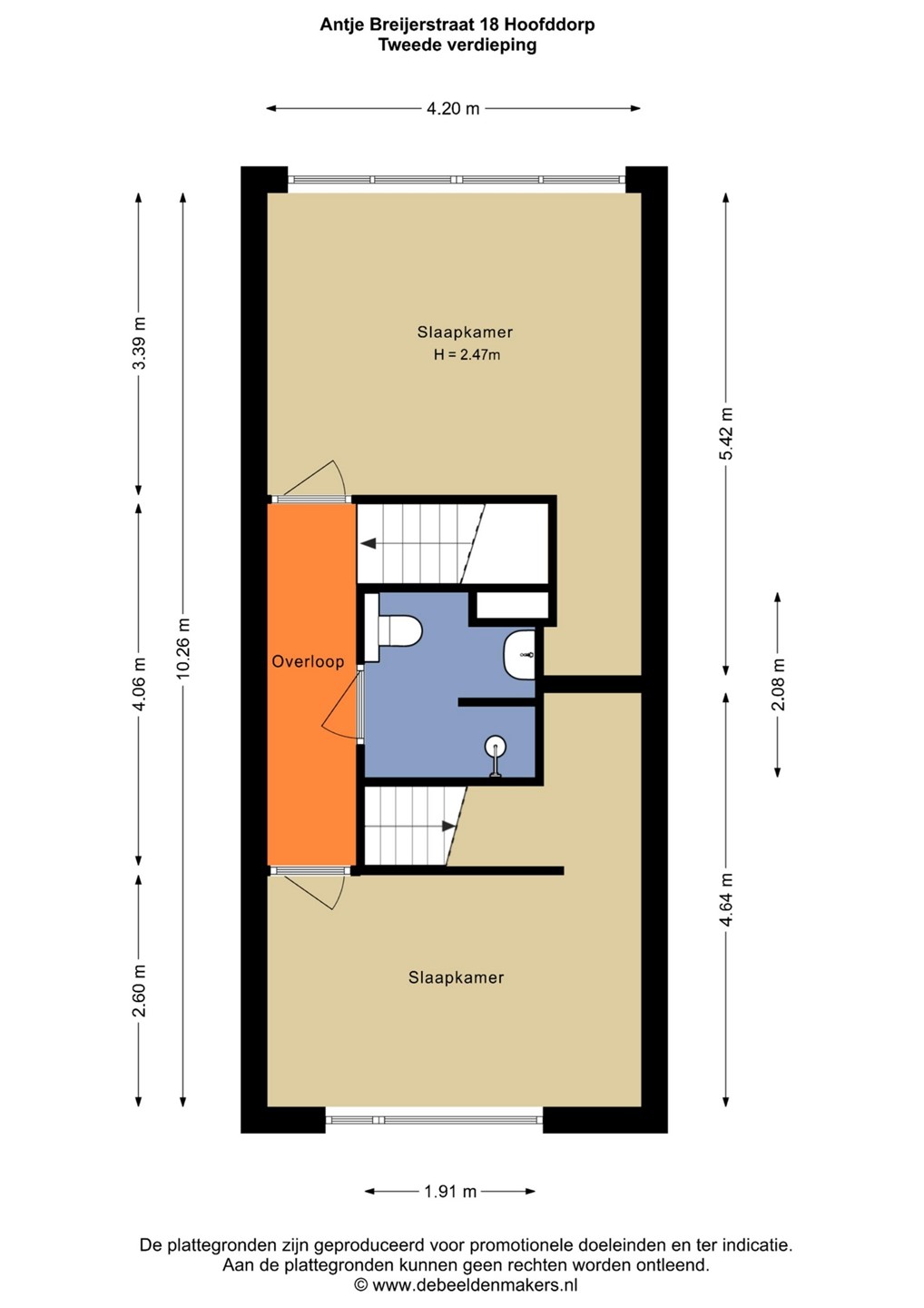 Tweede Verdieping: Hier tref je ook weer twee ruime slaapkamers en de tweede, nieuwe badkamer met inloopdouche, wastafel en toilet.