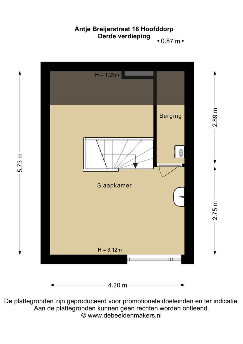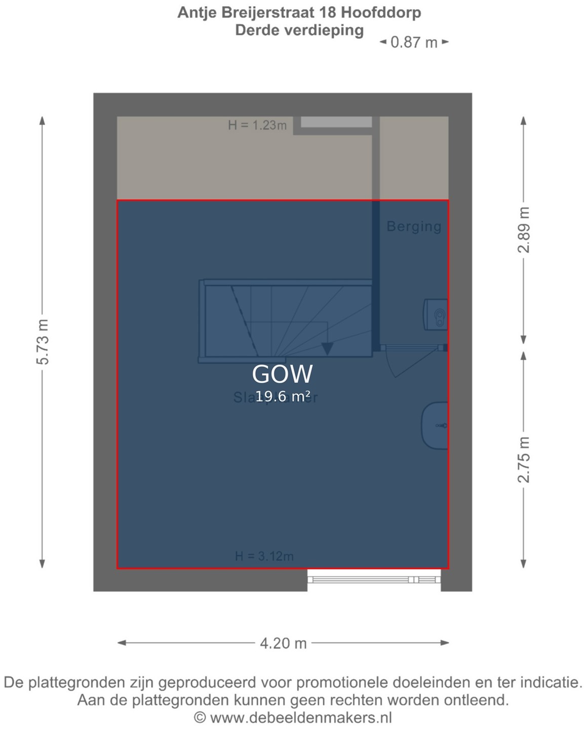 Derde verdieping: Slaapkamer en berging met de CV installatie