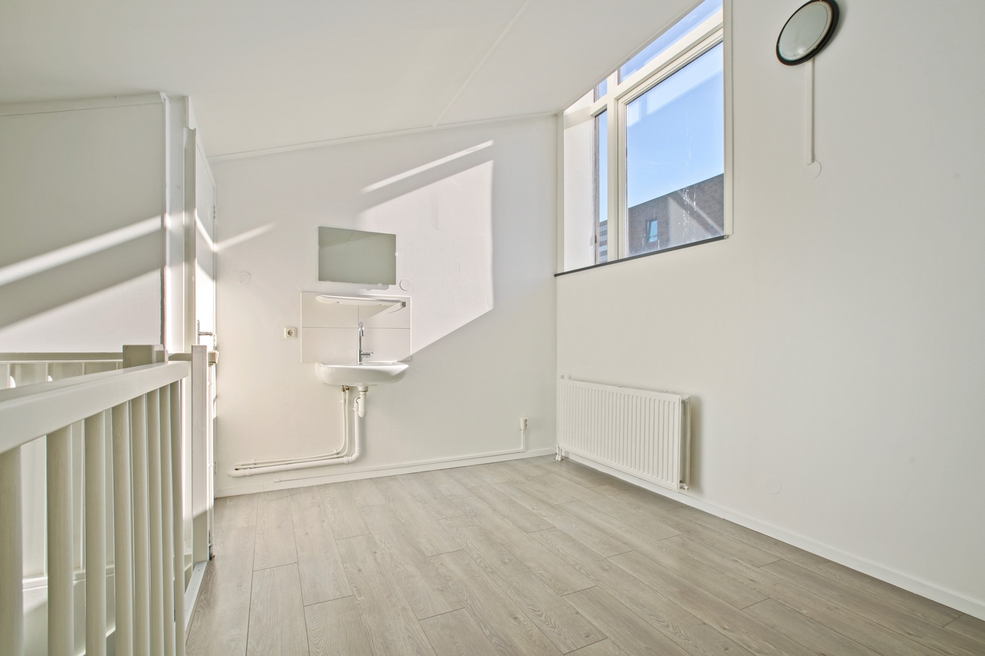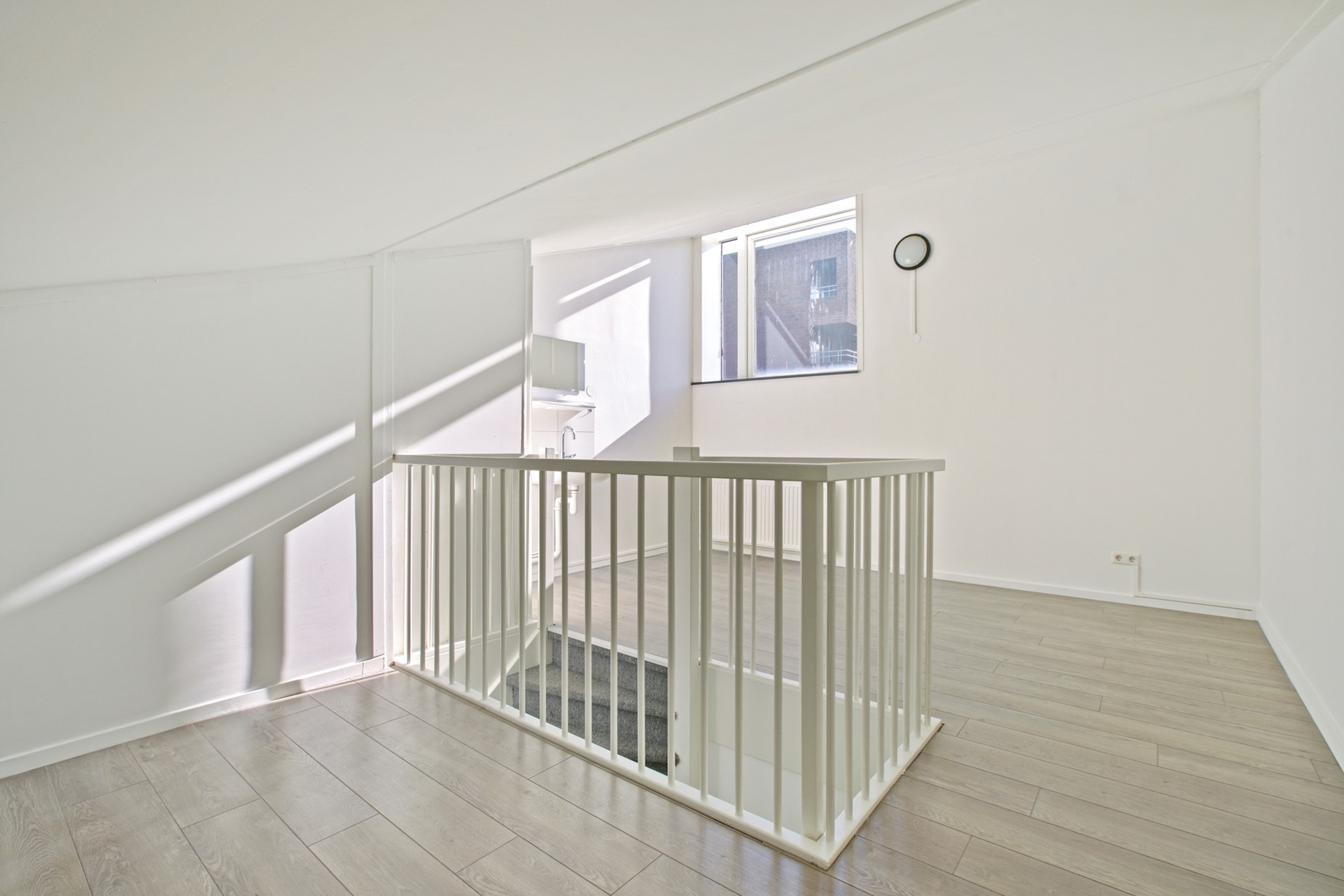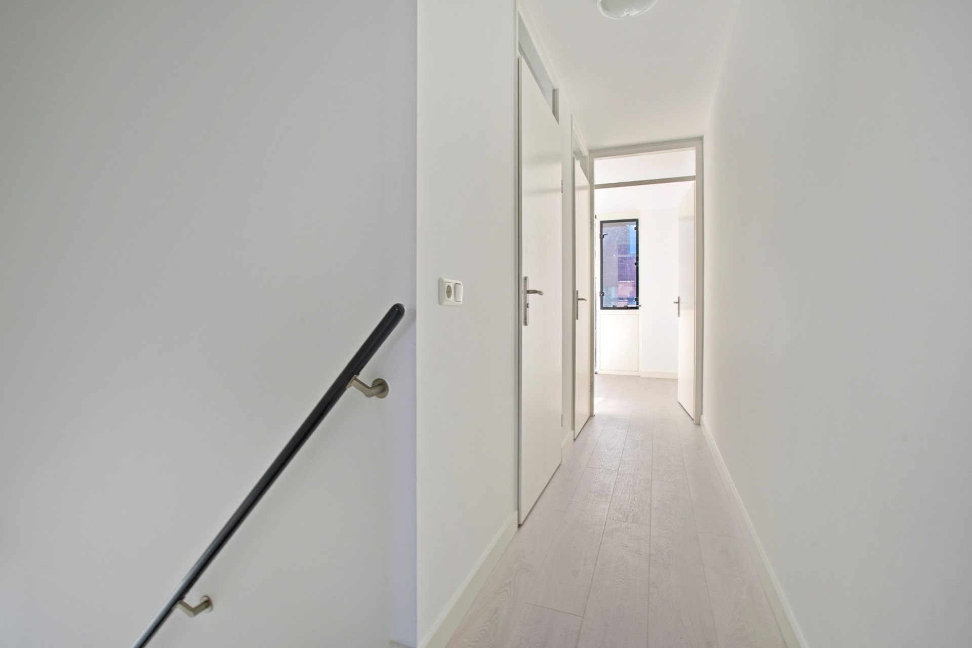 Eerste verdieping: Overloop met toegang tot 2 ruime en lichte slaapkamers waarvan een slaapkamer is gelegen aan de voorzijde van de woning. Het is echter heel goed mogelijk om op deze verdieping je woongedeelte te creëren. De aansluitingen voor een 2e keuken zijn aanwezig en op deze verdieping tref je een separaat toilet met fonteintje.